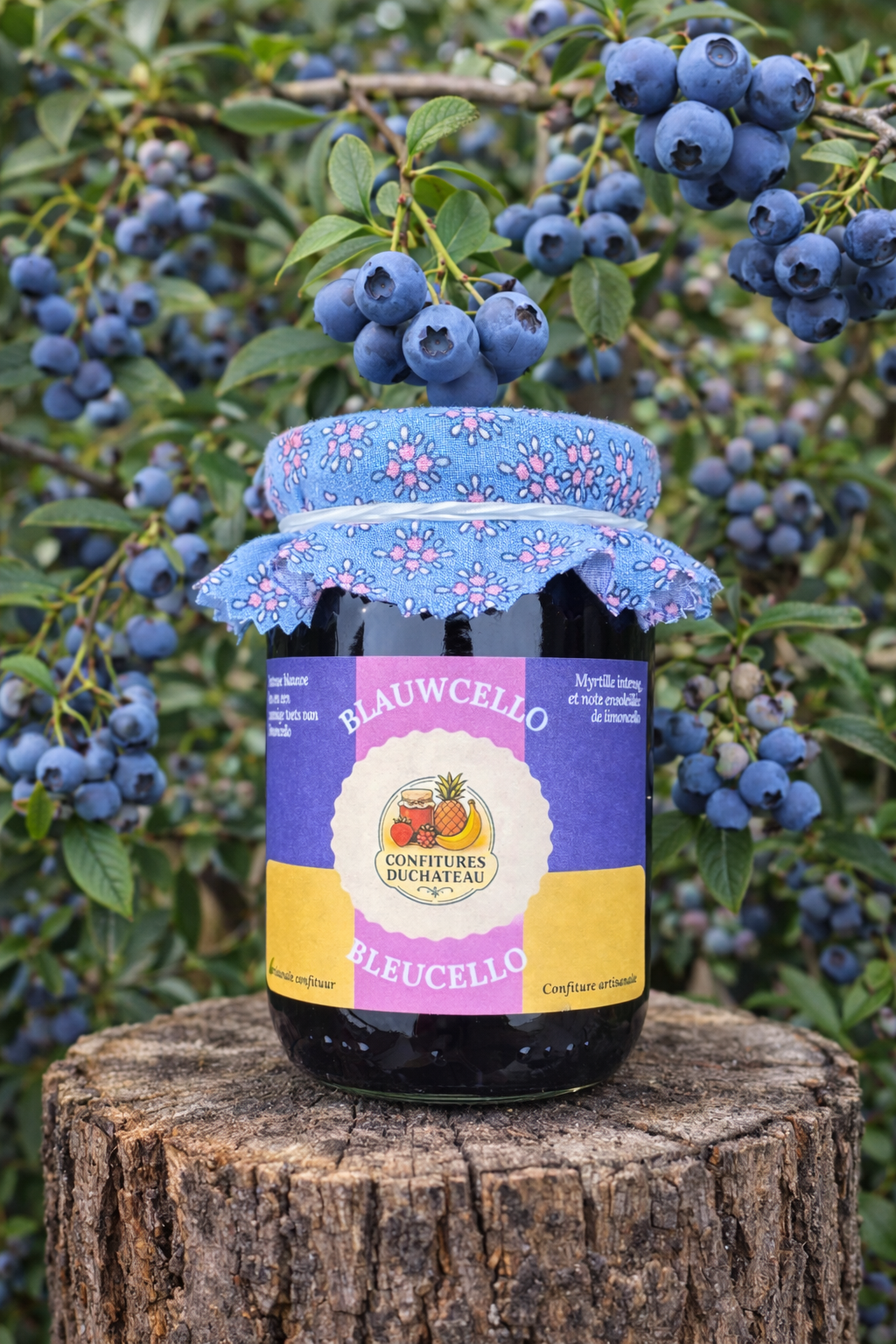 Ingrédients : myrtilles (63,5 %), sucre (31,7 %), limoncello sans alcool (3,2 %), jus de citron (0,8 %), pectine